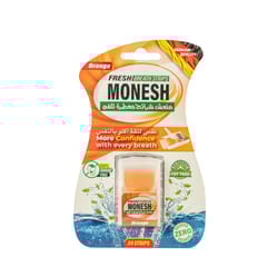 68a1ba0224962712e333c464FRESH BREATH STRIPS MONESH ORANGEhttps://desktop.mobitual.com/s/5e5b8eb5e1a30016118f588f/68a1c6b2bdb9d76c42e9c966/6297001217153.jpgInstant fresh breath with natural orange flavor. Features: Quick-dissolving strips, sugar-free. Benefits: Eliminates bad breath, boosts confidence, and provides a refreshing citrus burst. How to Use: Place 1 strip on the tongue, let it dissolve (no water needed). Cautions: Avoid if allergic to ingredients. Not for children under 5.60549